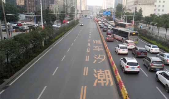 由于交通的“潮汐现象”,即每天早晨进城方向交通流量大,反向流量小;而晚上则是出城方向的流量大,更是加重了拥堵现象。针对该情况,在交通导流改造中采取可变车道的方式进行了交通组织,即:早高峰进城车辆多时,增加进城方向车道数,减少出城方向车道数,晚高峰出城车辆多时,增加出城方向车道数,减少进城方向车道数。潮汐车道就是可变车道,城市内部根据早晚交通流量不同情况,对有条件的道路设置一个或多个车辆行驶方向规定随不同时段变化的车道。例如,通过车道灯的指示方向变化,控制主干道车道行驶方向,来调整车道数。