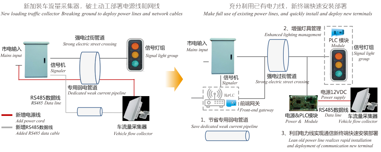 PLC-IoT 利旧已有电力线实现供电和通信,避免破土挖沟,高效打通路口终端设备,提高施工部署效率,缩短工程周期